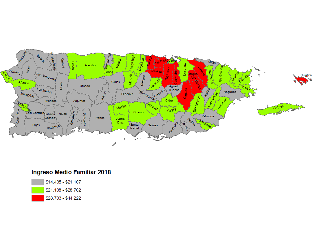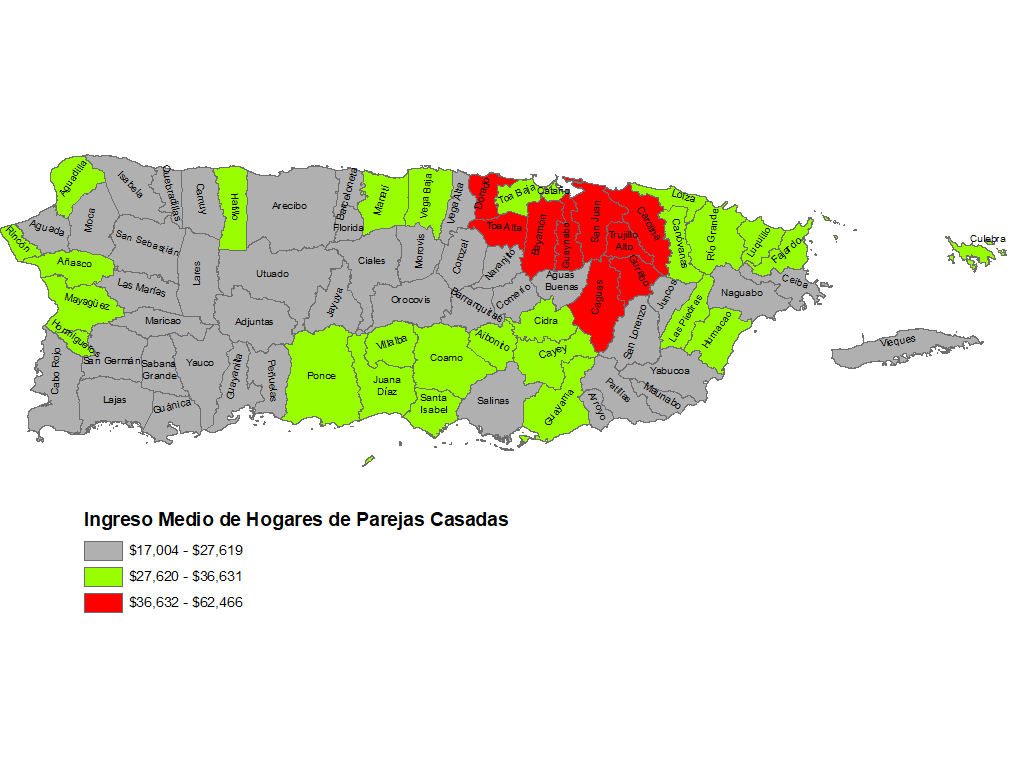 La desigualdad regional de ingresos en Puerto Rico(Ingreso Medio de los Hogares, de las Familias, y de los Hogares de las Parejas Casadas)